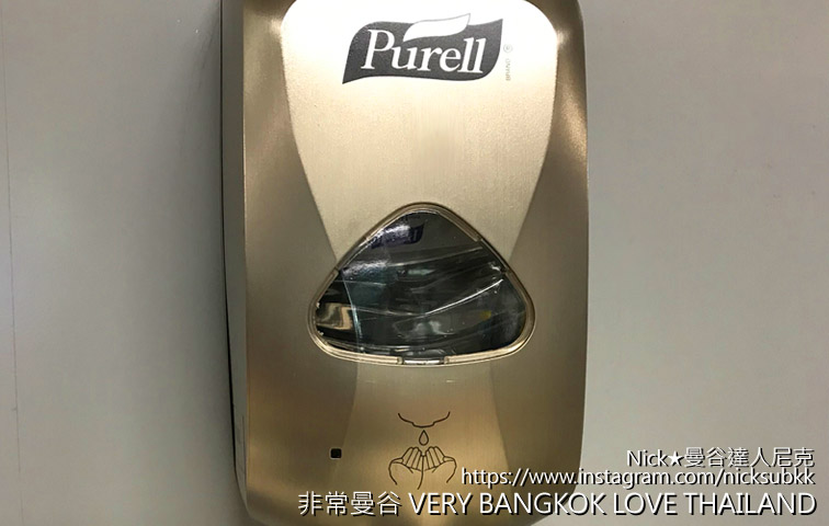 Purell 品牌的自動感應酒精乾洗手。如果入境泰國時,沒有發燒、咳嗽等相關症狀,就可入境,一切與往日正常!網路太多假消息、或是讓人過分擔心的焦慮重播新聞,建議請自行篩選,真的不需要有太多不必要的緊張。