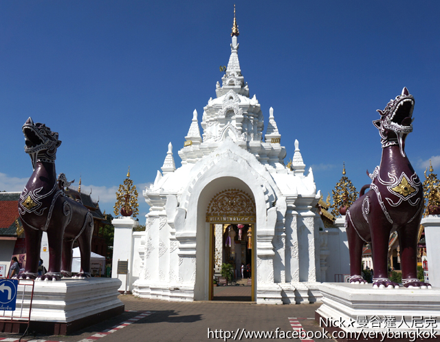 從清邁離開,搭車大約半小時左右就可以抵達這座城市 – 南奔(Lamphun)!南奔(Lamphun)這裡非常的純樸,一抵達這裡,周遭氛圍會讓人自然而然地慢下腳步,真的非常神奇!上圖是南邦最知名的寺廟-哈里奔猜寺(Wat Phra That Hariphunchai),上圖是入口、一對巨大的泰國聖獅塑像,展現原本氣派。