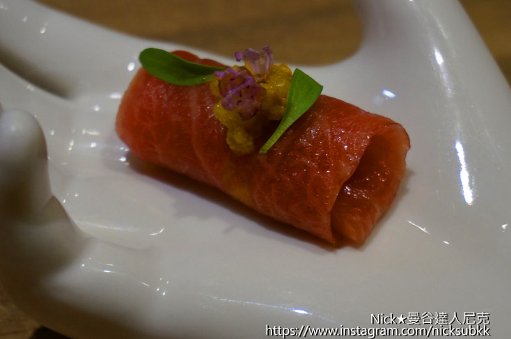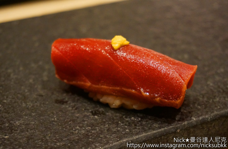 來自日本大分縣的野生鮪魚生魚片,用秘制醬油腌制24小時,肉質鮮細搭配壽司芳精緻調配的壽司飯,入口即化。