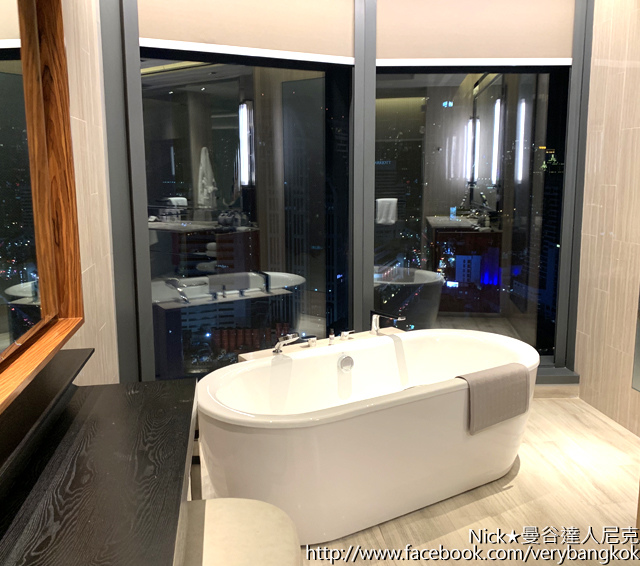 除了前面提到的乾濕分離設計之外,浴室內還有一個大型的浴缸,泡澡時還可遠眺曼谷素坤逸路(Sukhumvit Road)的城市美麗夜景,讓人感到非常放鬆!