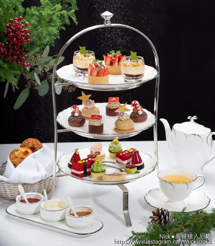 「耶誕繽紛下午茶饗宴」除了上述的美點之外,此套下午茶亦包含讓人朝思暮想文華的招牌伯爵茶風味英式司康餅&傳統口味英式司康餅(各一),外酥內鬆軟的口感,搭配兩款自製果醬與德文郡凝脂奶油 (clotted cream),口齒留香,以及主廚特選台灣新鮮草莓的草莓香草塔、聖誕樹造型的明蝦沙拉酪梨塔、經典法式栗香蒙布朗以及綠櫛瓜佐奶油乳酪,各個美味精緻、令人愛不釋口,帶來最富節慶氛圍的奢華午茶饗宴。