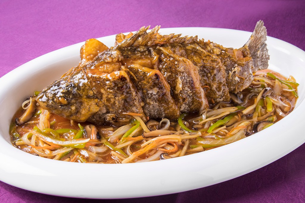 由台南的傳統家常菜所創作出來的「五柳百花山泉鱸」!五柳意指將五彩繽紛的食材切絲入鍋,條條分明、大小相同,加上採用來自水質優良宜蘭的山泉鱸魚,口感鮮嫩彈牙,營養價值豐富,補充新年好運氣。