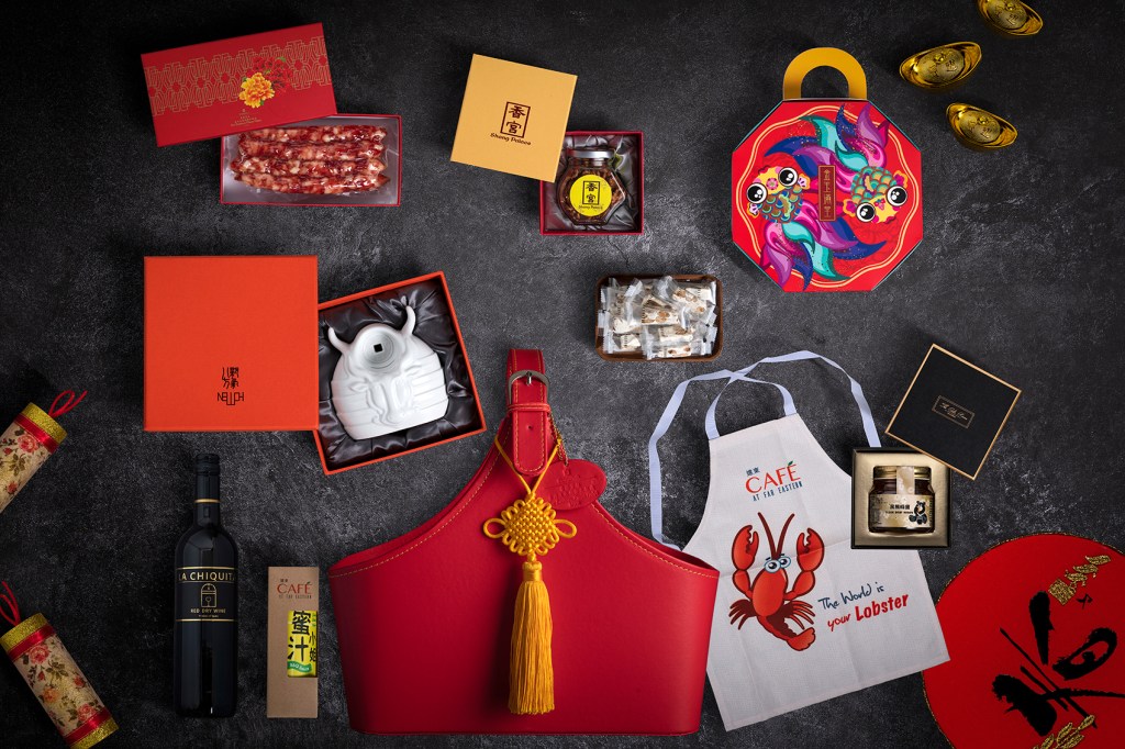 不僅大廳茶軒與八方新氣聯名的「新氣下午茶」,香格里拉台北遠東國際大飯店也於一樓「The Cake Room 」琳瑯滿目的新年伴手禮品中,獨家推出限量款「金牛報喜 極致禮籃」,加入八方新氣牛年系列商品–迎新存錢筒,外型以戴著盔甲的金牛代表堅定毅力與勇於挑戰,面對嶄新一年裡所有的新挑戰!極致禮籃還包括飯店國際廚藝團隊全新研發的遠東Café BBQ醬、高人氣的香格里拉香氛擴香組、香格里拉台北遠東自產的黑熊蜂蜜禮盒、香宮熱賣明星產品琥珀糖核桃、還有廣式臘腸、香菇、鞭炮牛軋糖以及討喜可愛的金牛報喜玩偶,是年節送禮自用皆宜的節慶品味禮籃!