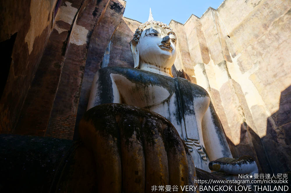 如果來到素可泰(Sukhothai),尼克建議一定要前來造訪「西春寺Wat Si Chum(The Temple of the Bodhi Tree)」。位在「素可泰遺蹟公園(Sukhothai Historical Park)」內的「西春寺Wat Si Chum」,擁有700多年的歷史、也是指定聯合國教科文組織指定的世界文化遺產!尼克曾經在許多泰國的旅遊宣傳影片或是照片看過「西春寺 Wat Si Chum」,希望有能有一天前來這裡,這一次也算是願望成真,來到這裡真的讓人感到內心無比平靜卻又充滿神奇能量。
