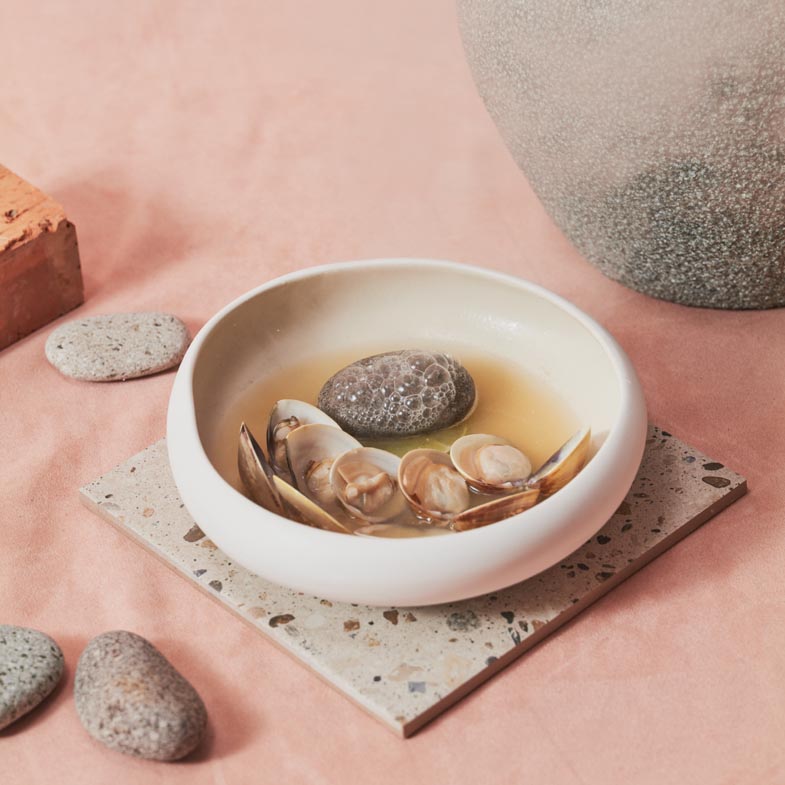 到一道菜色的靈感蘭來源,是以馬雅古城梅里達 (Merida) 傳統住民料理 – 石頭湯 (Caldo de Piedra – Stone Soup)為靈感,James將滾燙的石頭置於碗底,盛上燉煮12小時以上、滿富礦物膠質濃郁雞湯,乾蔥的甜味及雞湯的瞬間濃厚湧上鼻息,讓人極為驚豔。