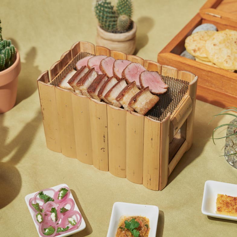 慢燉手撕牛(Barbacoa) 以哈拉匹紐辣椒(Jalapeño) 製成的綠色莎莎醬(Salsa) 為底,放上由牛骨及多種墨式風味香料熬製的高湯低溫慢燉長達36小時的牛小排,將其撕成小塊後煙燻增添香氣,無論是單吃或是包入塔可都非常適合。