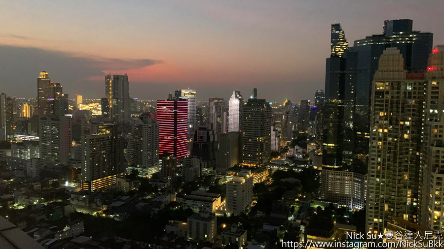 ▲從Zoom Sky Bar看出去的夜景真的很美,值得一提的是這裡的夜景可以看到360度,完全無遮蔽和CHAR Rooftop Bar看到一面景色不太一樣,而且小朋友也可以來這裡(曼谷有些SKY BAR有年紀限制、18歲以下無法入場),所以Zoom Sky Bar算是適合全家一起來的高空酒吧!