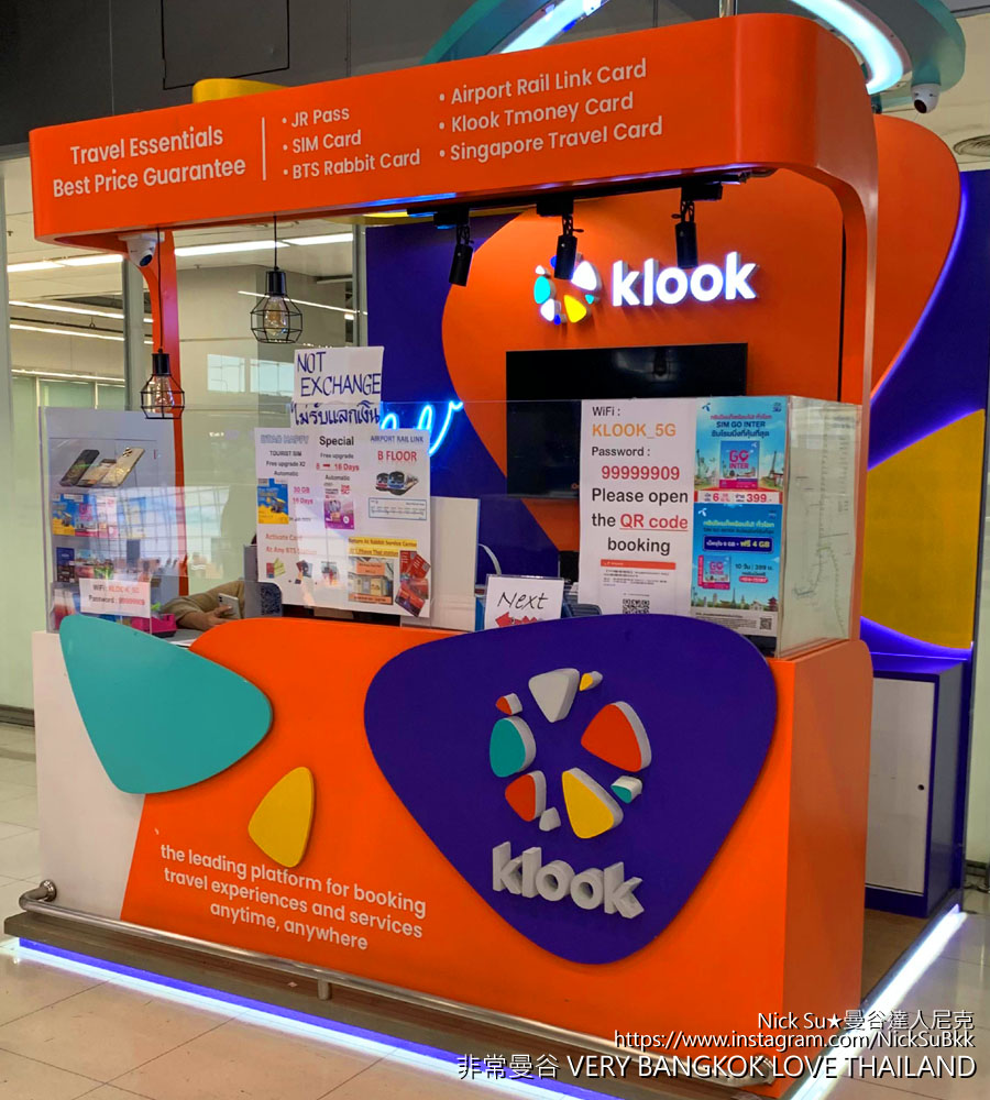 ▲一抵達泰國曼谷蘇凡納布國際機場(Suvarnabhumi Airport、BKK)拿完行李之後,入境的地方是在機場的2樓,尼克建議可以搭乘電梯(要找一下、有時很多人)或是電扶梯往上到4樓的出境大廳樓層,找到KLOOK的24小時服務台先兌換《Bangkok FunPASS 好好玩曼谷護照》 提供的BTS捷運卡(rabbit card)(KLOOK櫃台位在機場4樓出境大廳、第K排、KBank銀行櫃檯旁邊~很好找)。