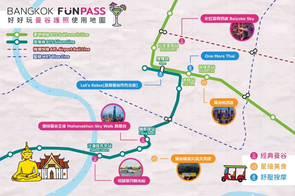 ▲ Bangkok FunPASS 好好玩曼谷護照使用地圖。