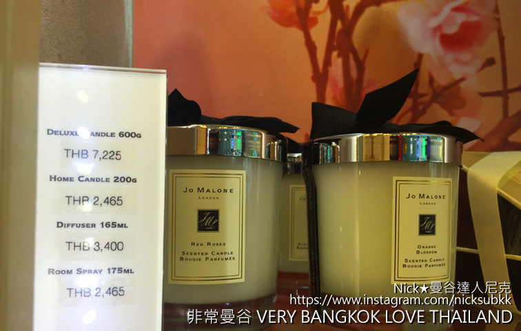 這裡是《Jo Malone》居家香氛蠟燭(HOME CANDLE)200g、室內擴香(DIFFUSER)165ML、室內香氛噴霧(ROOM SPRAY)175ML的泰國機場免稅價格,給大家比較看看喔!真的價差好大!(泰國曼谷機場的KING POWER(類似台灣的昇恆昌)常常打折,出發前可以先算一下喔,尼克遇到的是滿2000減200元;滿4000元減500元,滿10000元減1000~1200不等,每次的泰國曼谷蘇凡納布國際機場(Suvarnabhumi Airport、BKK)KING POWER促銷不同,一定要先問一下店員喔!)加上匯差、刷卡信用卡的回饋,不買太可惜囉!