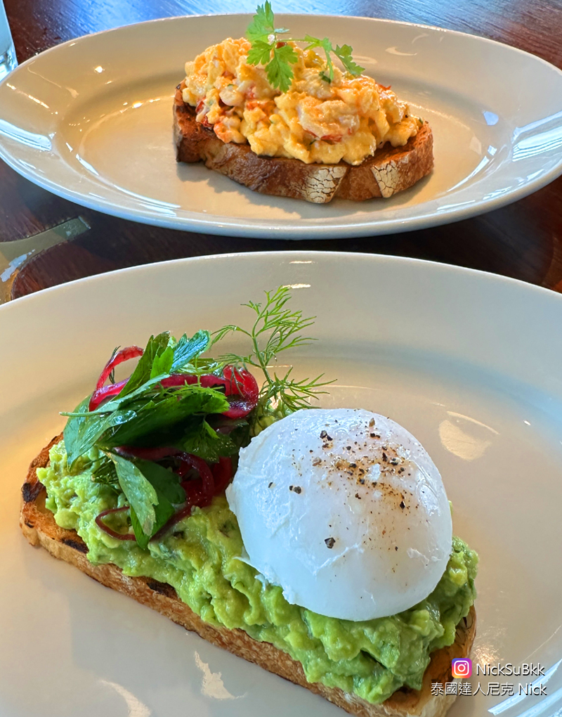 接下來可以選擇三款豪華麵包之一:龍蝦炒蛋酸種麵包、魚子醬班尼迪克或水波蛋酪梨泥雜糧麵包。如果是多人一起用餐,可以每一種都點來品嘗。