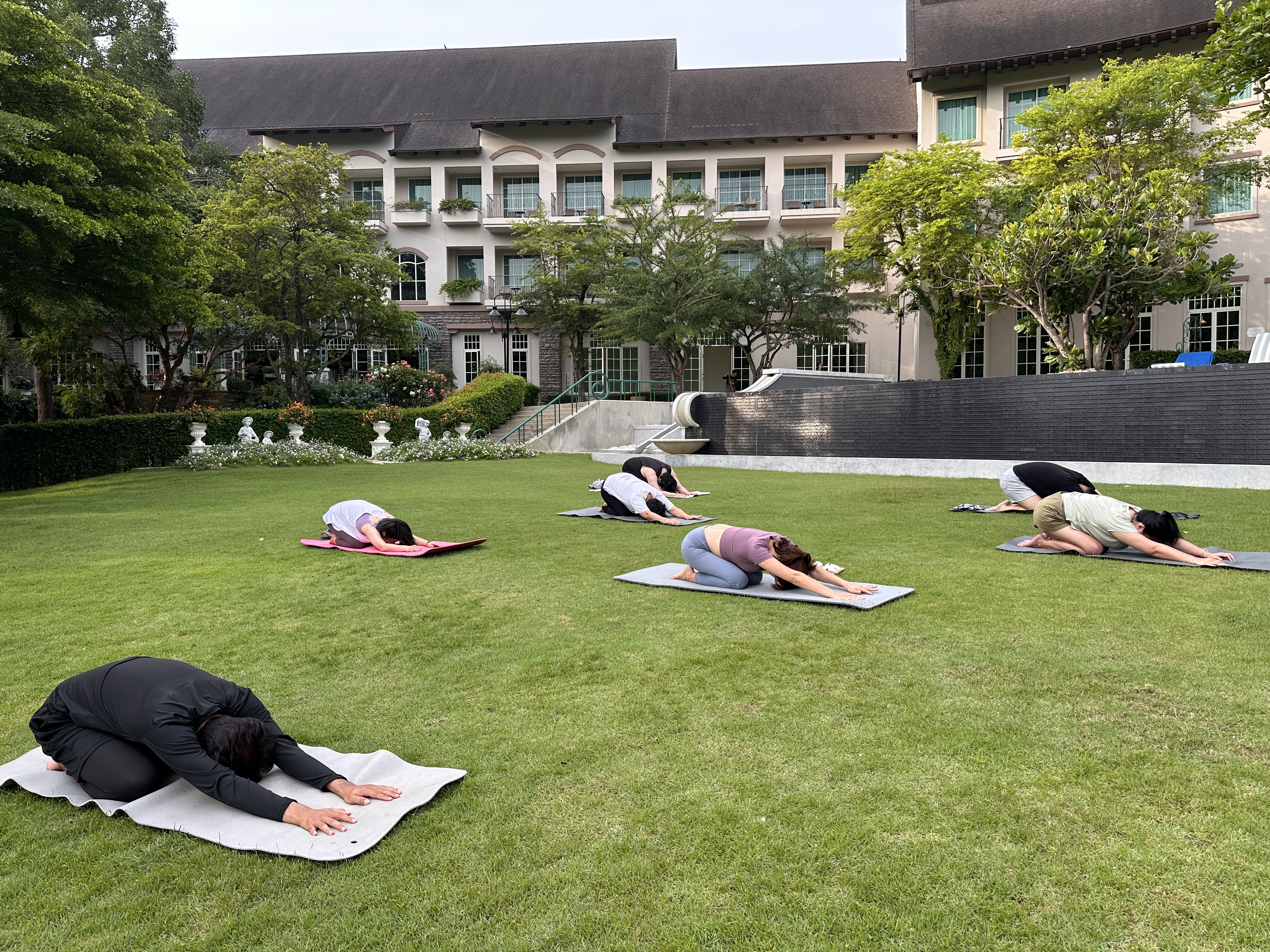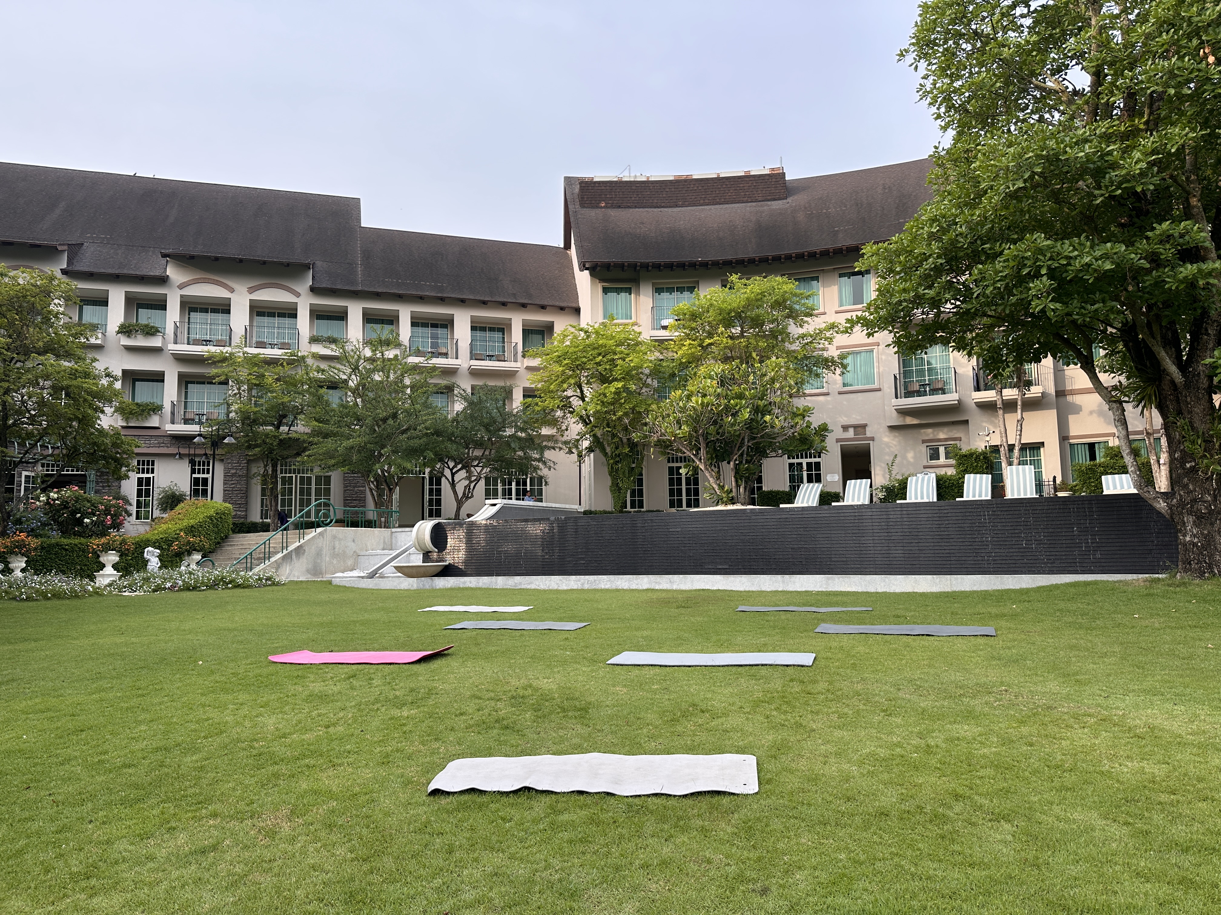 如果你也跟我一樣,喜歡在旅途中找回生活節奏,那麼U Khao Yai所安排的晨間Morning Yoga就是你的必體驗!天剛亮的清晨,在如詩如畫的酒店花園大片草皮中、由專業瑜伽老師指導課程,空氣中帶著清甜的山林氣息與鳥鳴讓人心情沈澱、身心舒暢。