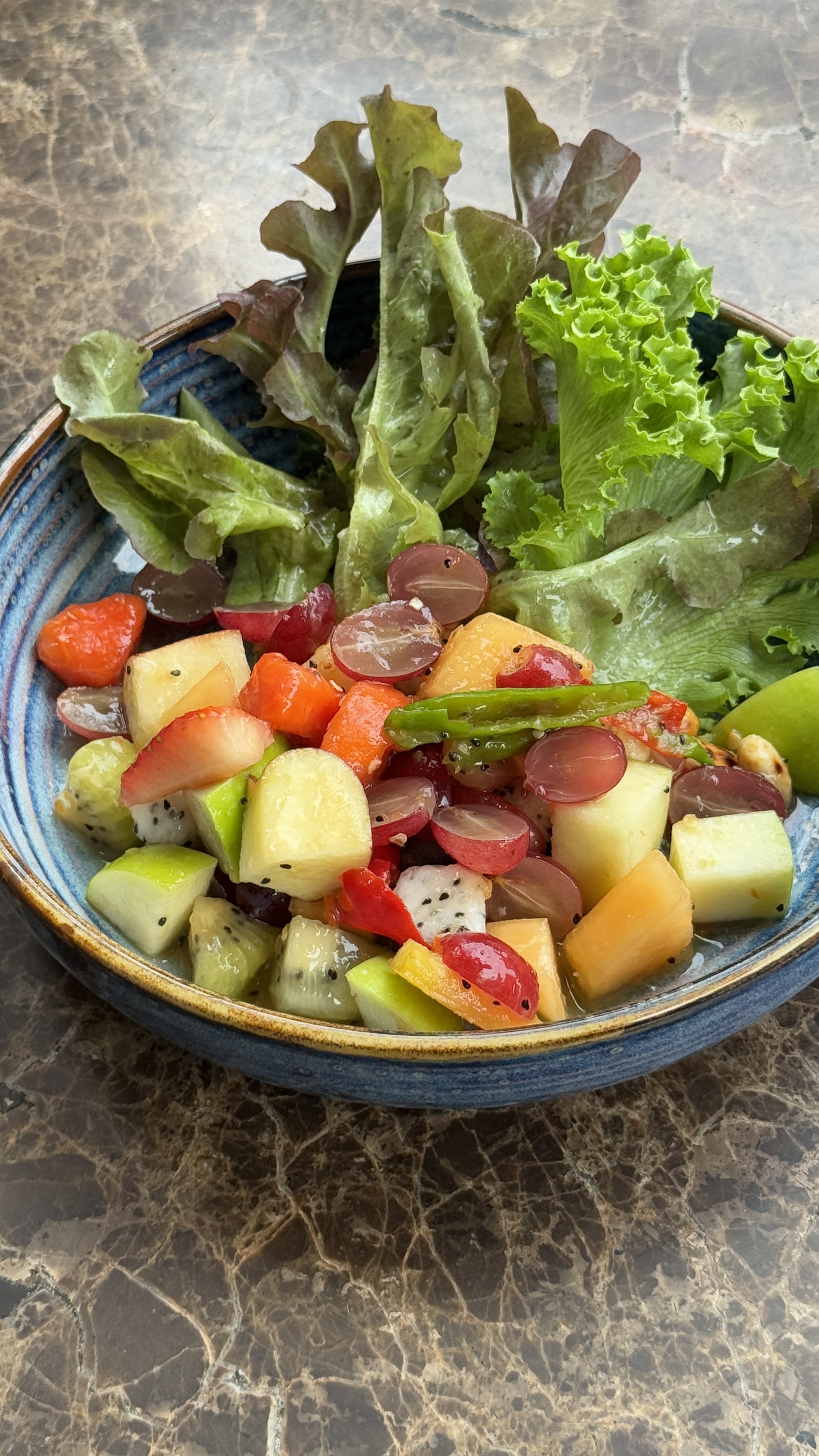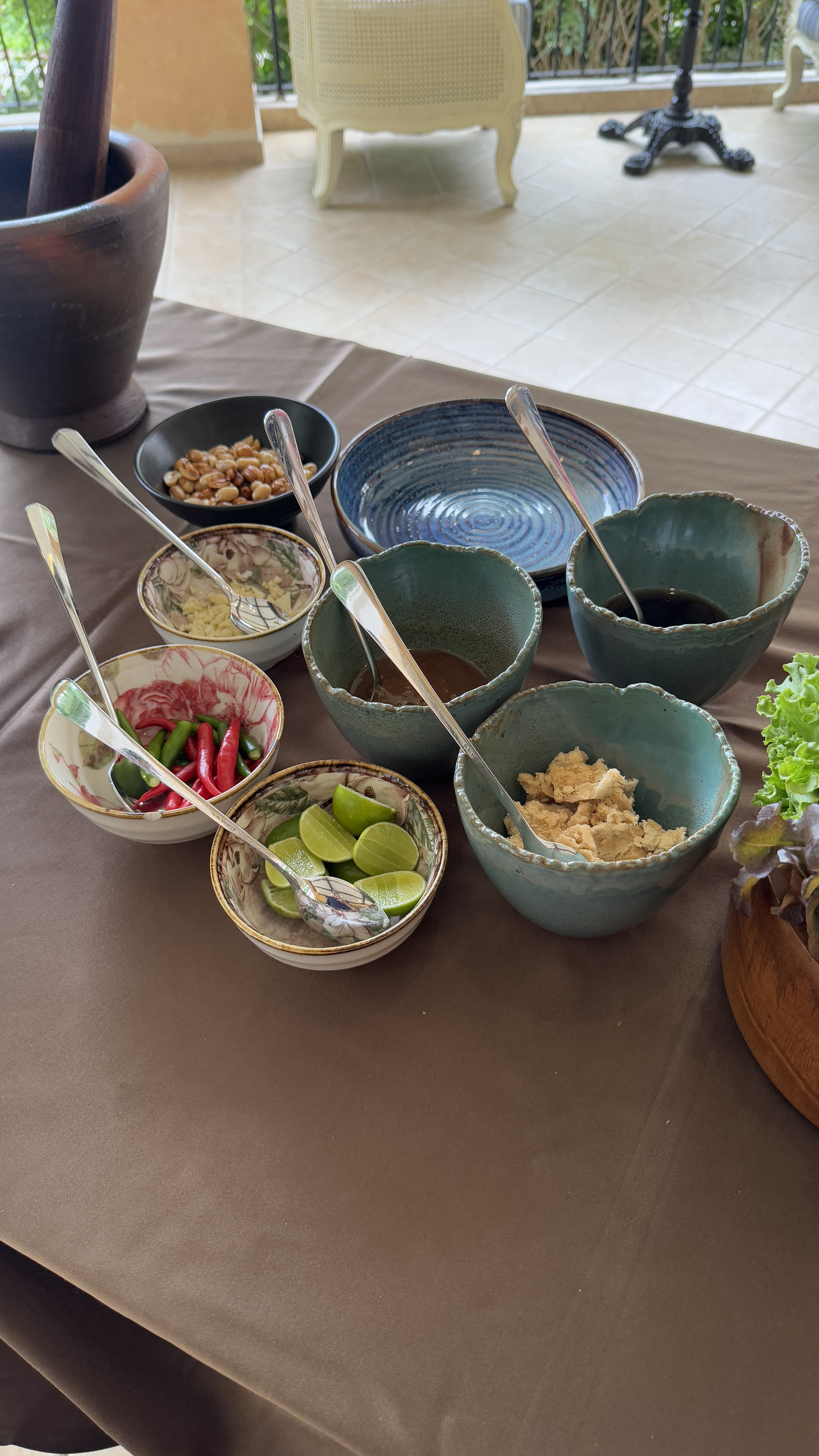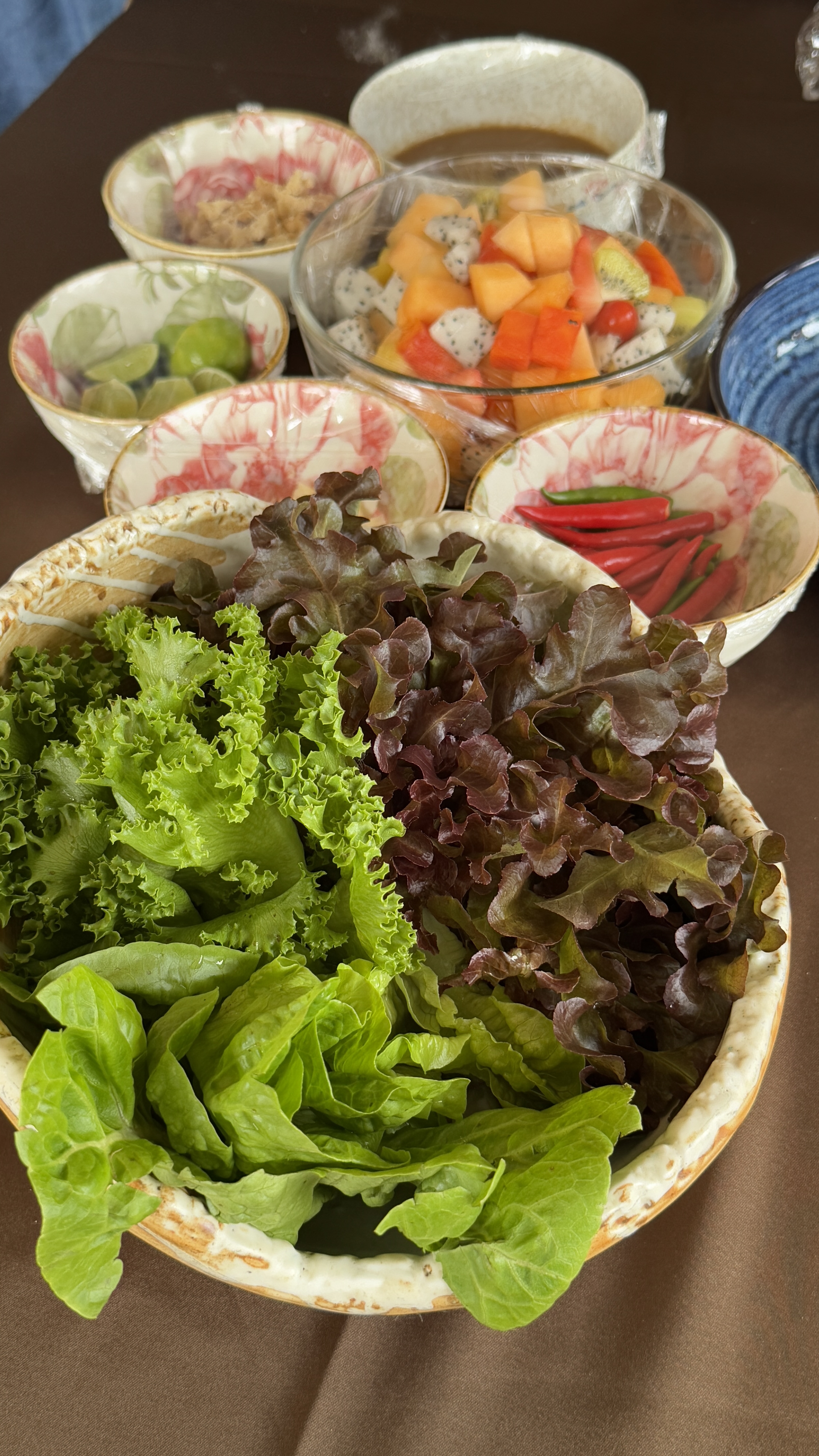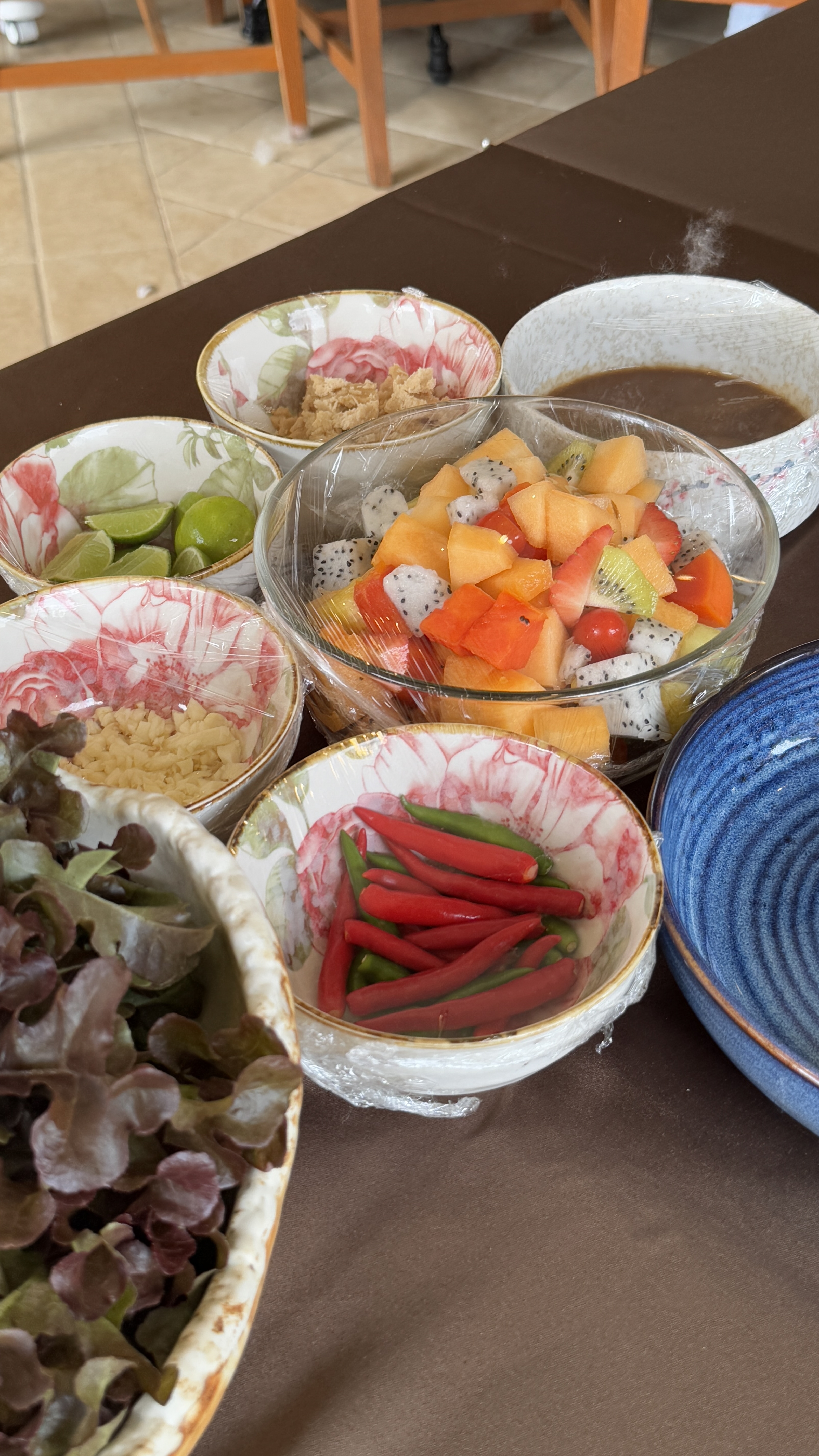 結束瑜伽後,緊接著是U Khao Yai特別安排的「泰式水果沙拉DIY」課程。你可以選擇自己喜愛的新鮮熱帶水果,搭配經典泰式酸辣醬料製作出專屬的Som Tum水果版。不只是吃進健康,還多了一份參與的樂趣。在飯店餐廳內的戶外空間一隅搭起的戶外料理檯,主廚一邊帶大家認識每一種水果的特色與功效,一邊與大家交流,是一種從味覺到心靈的溫暖互動。