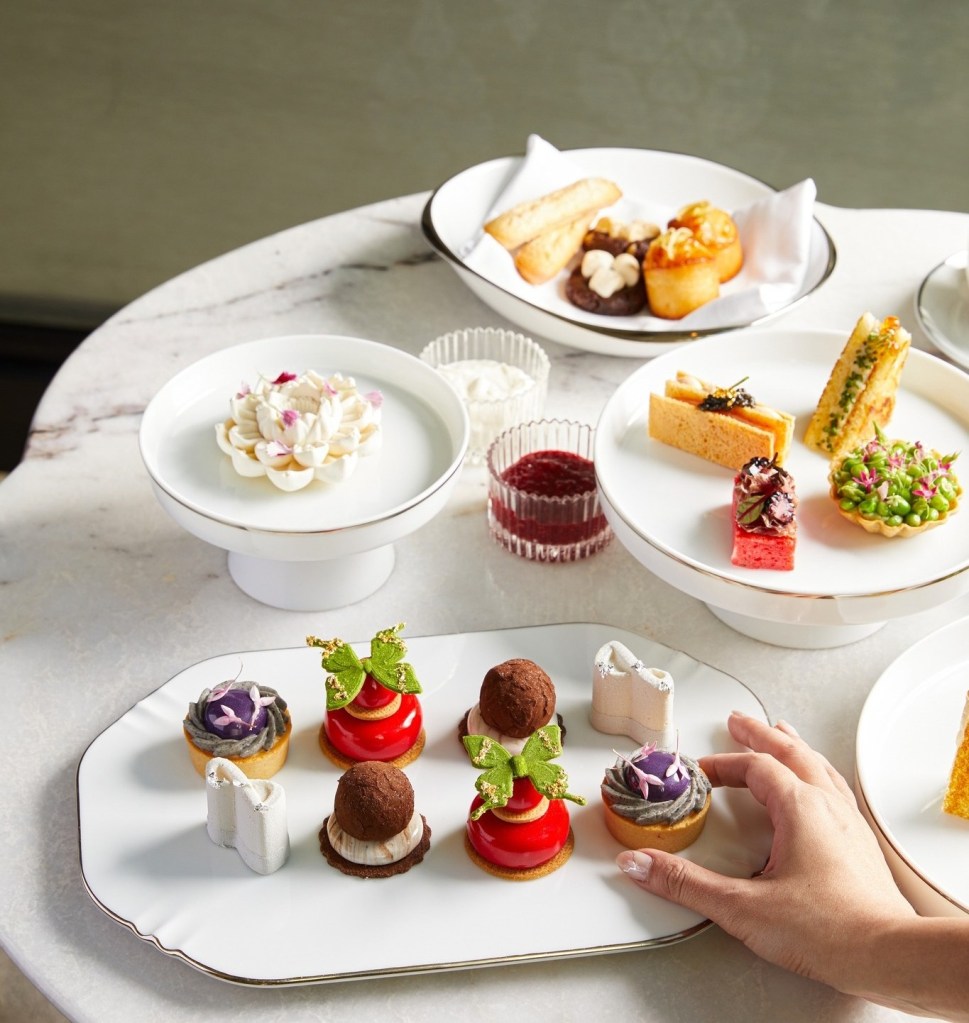 「Infinity 無限下午茶」於飯店八樓的 Living Room 供應,空間挑高、自然光灑落,窗外即是曼谷都會核心的迷人天際線。整體氛圍仿若藝術藝廊,每一道甜點與鹹點皆宛如陳列展品。甜點包含以鏡面糖衣呈現無限符號(∞)意象的巧克力慕斯、螺旋結構靈感的千層酥,以及加入泰國本地香料與花材的輕盈糕點。鹹點則注重口感與風味平衡,呈現西式與亞洲風格的融合創意,為整體味蕾旅程增添豐富層次。