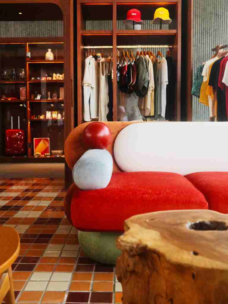 走進 The Standard 的公共場域,你會發現這座酒店已經化身為一座可互動的展覽空間。Müller Object 首度發表的家具系列「The Puffiction」,以鮮明而富有張力的輪廓,重新定義了家具在空間中的角色。對尼克來說,這裡的家具不再只是冰冷的陳設,而是能引發情緒共鳴的存在。每一件作品都遊走於藝術奇想與實用功能之間,邀請旅人自在地倚靠、躺臥、觸摸。